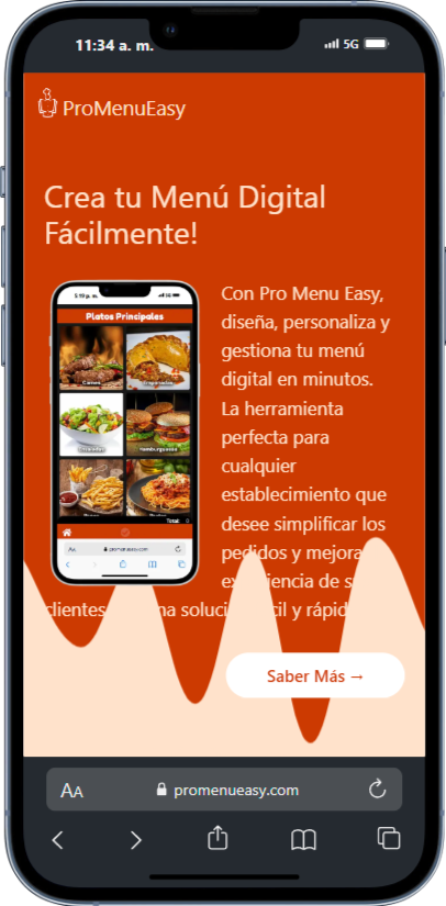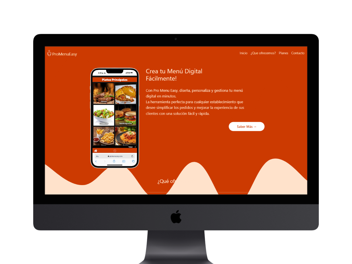 En esta sección, los potenciales clientes pueden conocer lo que ofrece el servicio de menús digitales y ponerse en contacto para contratarlo.