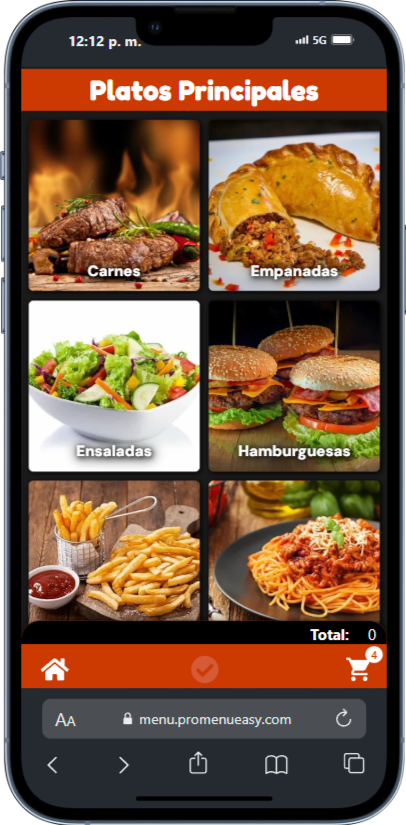 Aquí los comensales pueden visualizar todos los productos ofrecidos por el local y encargarlos.
